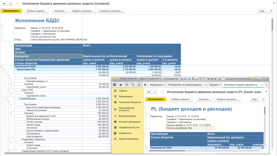 Рисунок 1. БДДС и БДР на примере программного продукта «WA: Финансист».